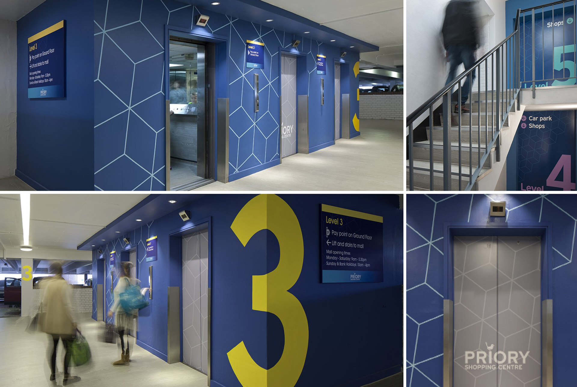 Priory Shopping Centre — design and delivery of a full interior refit, including environmental graphics, signage, and spatial branding across all customer areas